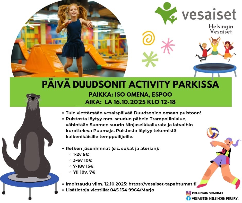 Lähde mukaan Helsingin Vesaisten vauhdikkaalle syyslomaretkelle torstaina 16.10. klo 12!